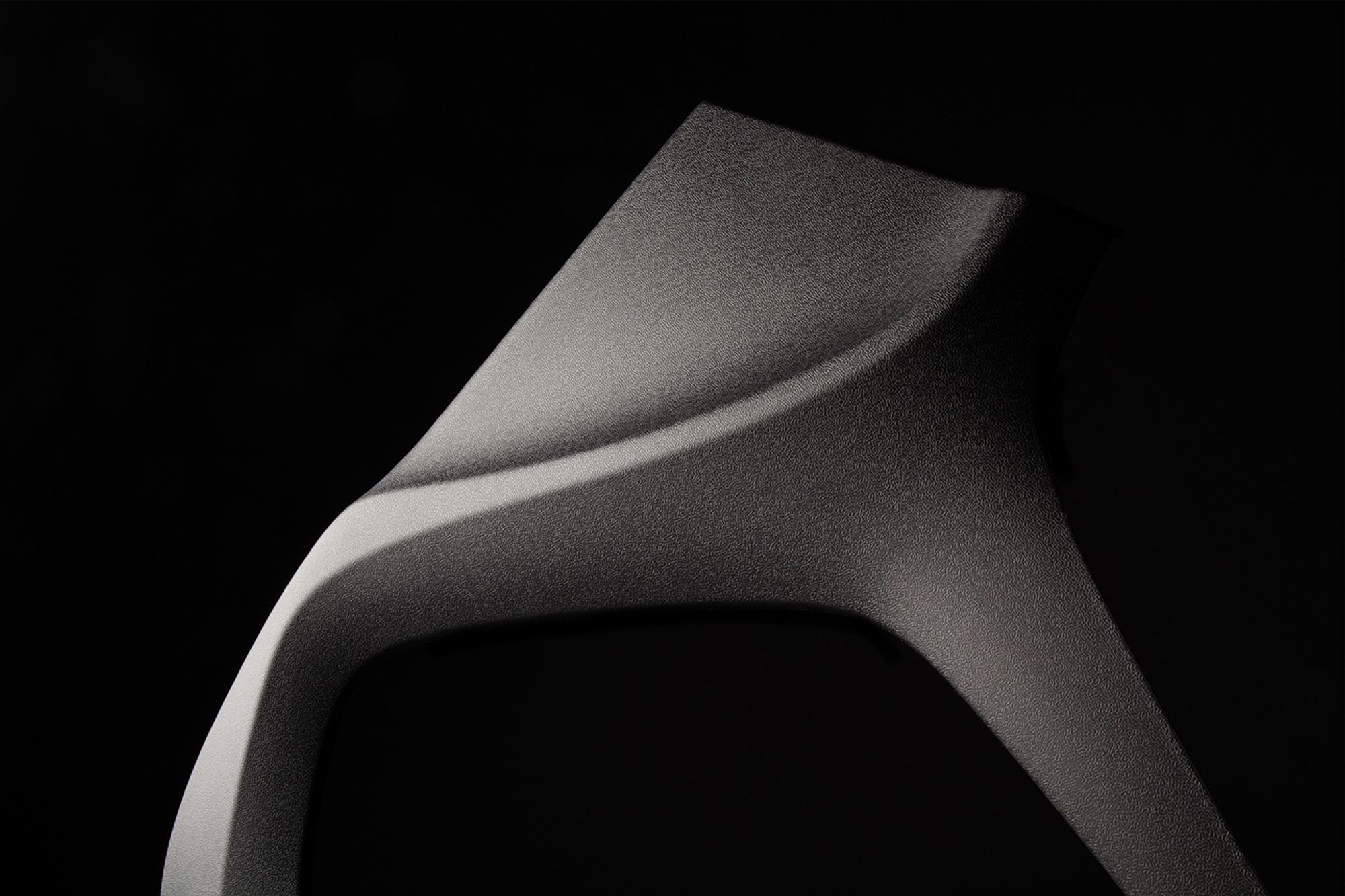 The first surface model was printed for size validation. A suitable spot for the hinge was found by cutting the model apart & drawing overtop of it. The visual branding language was built around the branding mark, and the hinge break was designed to maintain it as a focal point.